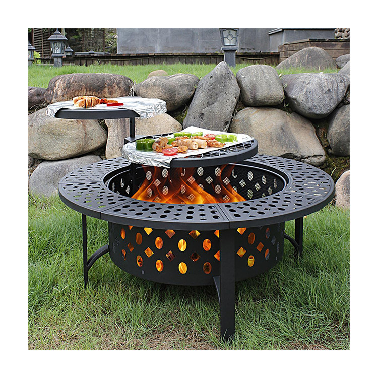 Σύγχρονη εξωτερική φωτιά AJUNION 36 ιντσών Γύρω μεταλλικό ξύλο καύση φωτιά λάκκο με 2 μπάρες